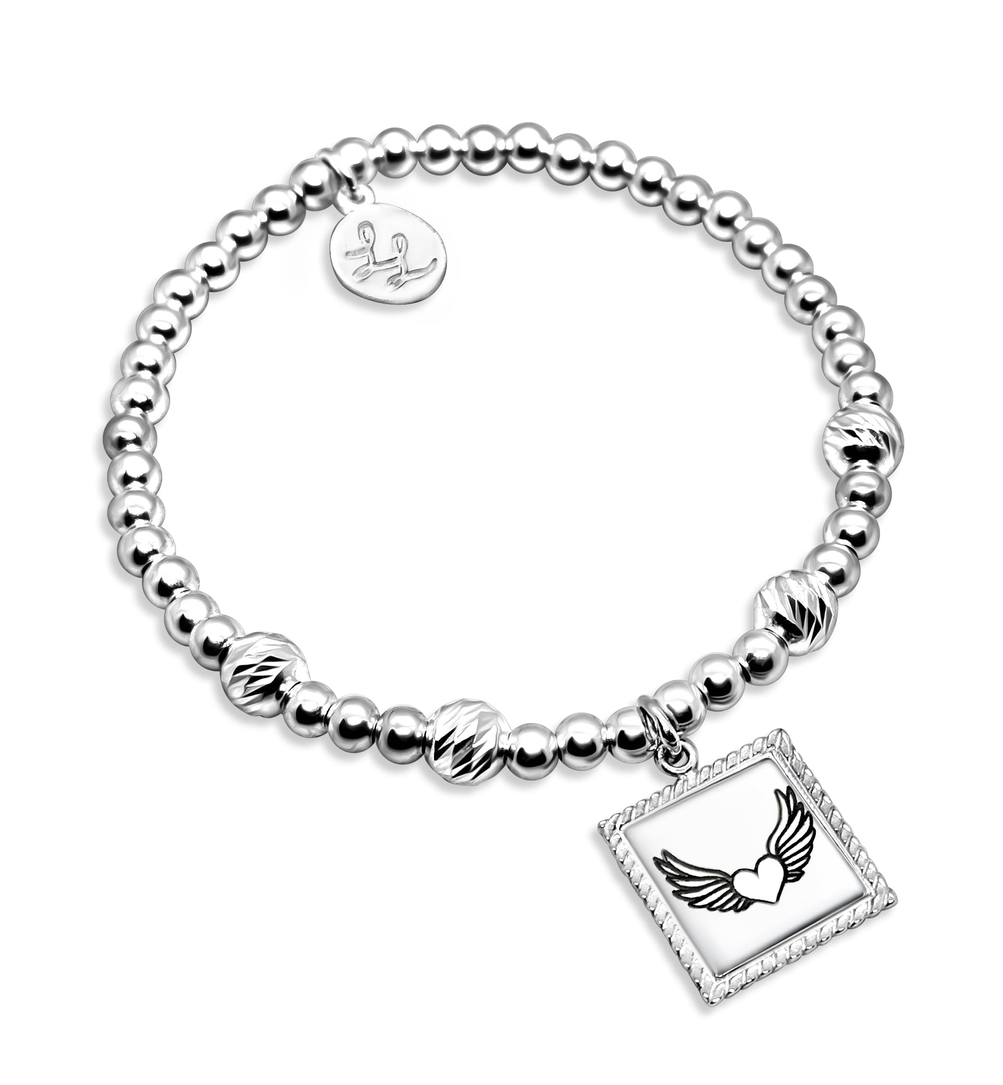 Loretta’s Loving Wings is a bright, feel-good piece designed to lift the heart. It’s crafted with soft medium beads paired with larger, sparkling sterling silver beads that catch the light in the sweetest way. At the centre sits a striking sterling silver square, delicately engraved with loving angel wings — a gentle symbol of love, protection, and comfort. It’s the kind of piece that feels special the moment it’s yours.